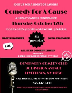 Join Local 342 Members for FUN and FUNDraising for our annual campaign to support the American Cancer Society’s Making Strides Against Breast Cancer. This one is COMEDY!